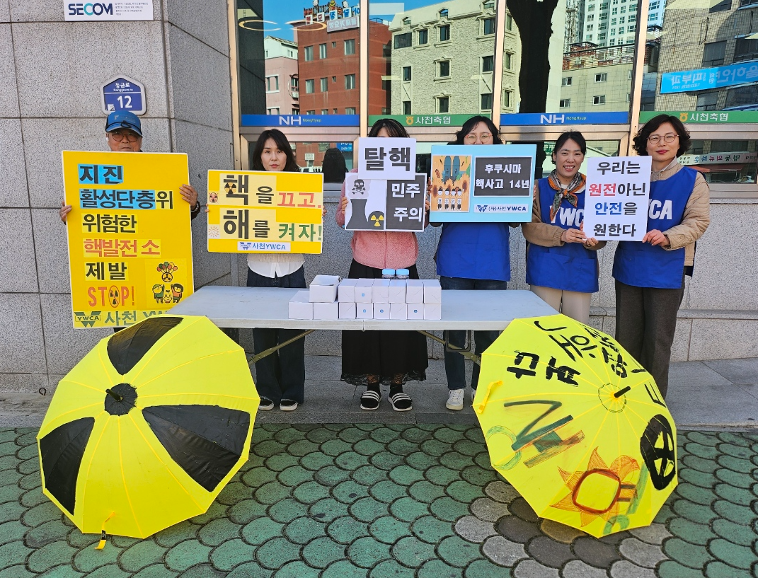 사천YWCA는 3월 11일(화) 동금농협 앞에서 후쿠시마 핵사고 14주기 및 탈핵 캠페인 진행했다.
