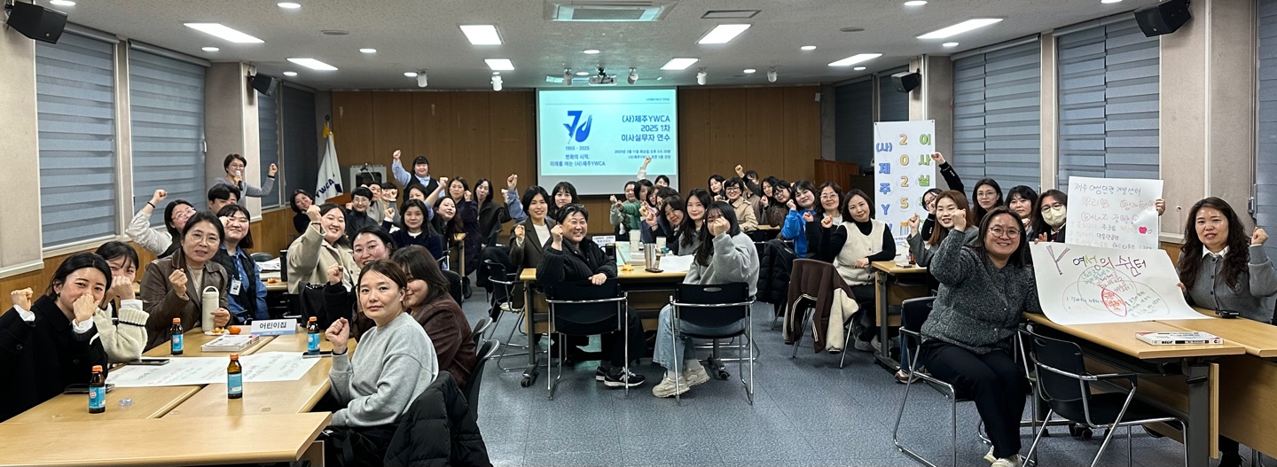 제주YWCA는 3월 10일(월) 본 회관 3층 강당에서 본부를 비롯한 부속시설 자원활동가와 실무활동가 60여 명이 참여한 가운데 ‘2025 1차 이사·실무자 연수’를 진행하였다. 이번 워크숍은 제주YWCA 활동가들이 환경실천가로서 실생활에서 지킬 수 있는 행동 실천에 대해 토론했다. 실시간으로 목표량을 설정하여 진행도를 확인할 수 있는 어플을 통해 자신이 속한 기관에서 설정한 공통 실천 행동 1개와 실생활에서 지킬 수 있는 개인 실천 행동 2개를 설정하여 공유하는 시간을 가졌다. 참가자들은 이번 연수를 통해 활동가로서 일상 속 사소한 것부터 실천하는 행동력을 가지기 위해 마음을 다잡는 시간이 되었다.