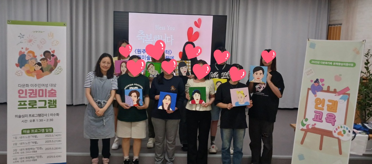 국가인권위원회‘2025년도 강원지역 인권문화 확산 사업’ 지원으로 진행된 이 프로그램은 원주주시에서는 최초로 이주민을 위한 인권침해 및 차별 치유프로그램이다. 본 프로그램을 통해 결혼이민자여성들이 자신의 경험과 감정을 창의적으로 표현하며 자아를 탐색하고, 자신이 겪은 차별이나 어려움을 시각적으로 표현하며 타인의 경험에 대한 공감 능력을 키우고, 인권의식 향상에 도움을 줄 수 있었다.