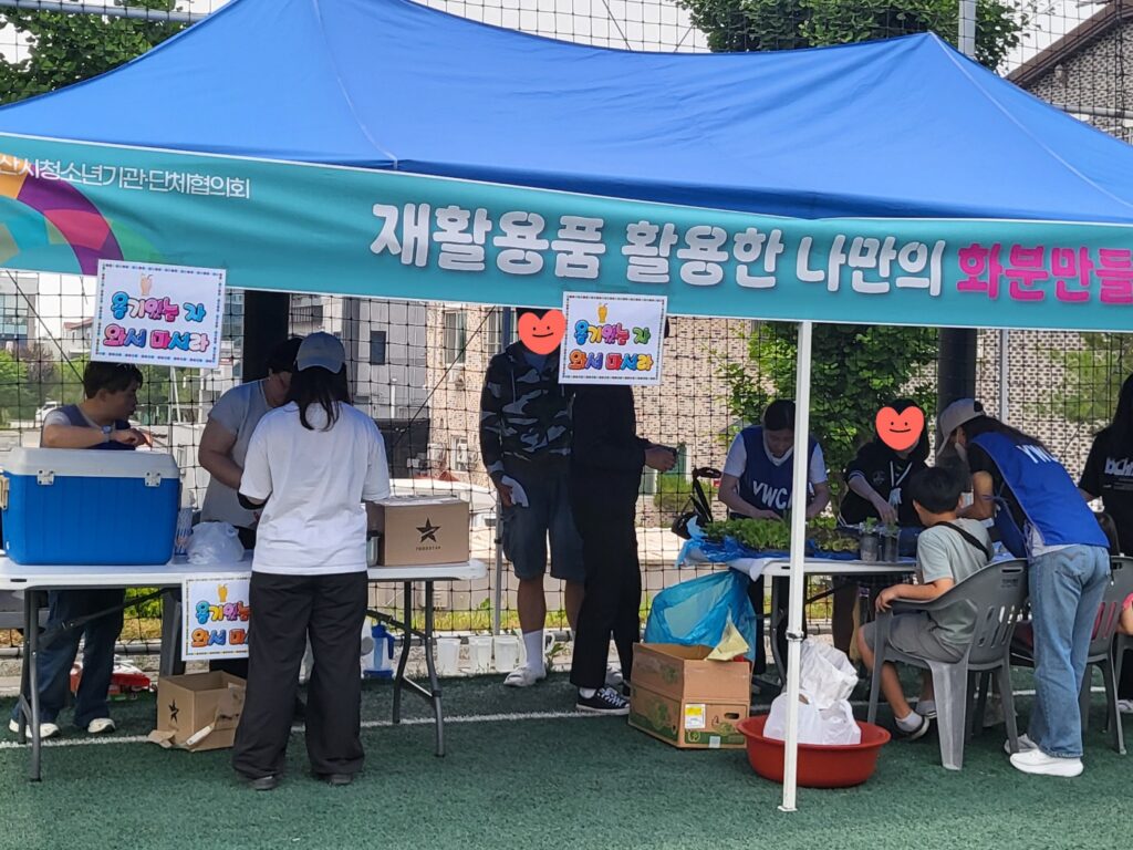 (사)익산YWCA는 5월 31일 익산시 청소년의 날 기념행사에서 ‘재활용컵을 활용한 나만의 화분 만들기’ 체험부스를 운영했다. 청소년들은 수거·세척된 일회용컵에 상추 모종을 심고 이름표를 붙이며 자원순환과 생명존중의 가치를 배웠다. 또한 텀블러나 개인 컵을 지참한 참가자들에게는 무료 레몬에이드를 제공하는 친환경 이벤트도 진행했다. 이번 활동은 청소년들에게 일상 속 자원 절약과 기후위기 대응 실천의 중요성을 알리는 계기가 되었다.