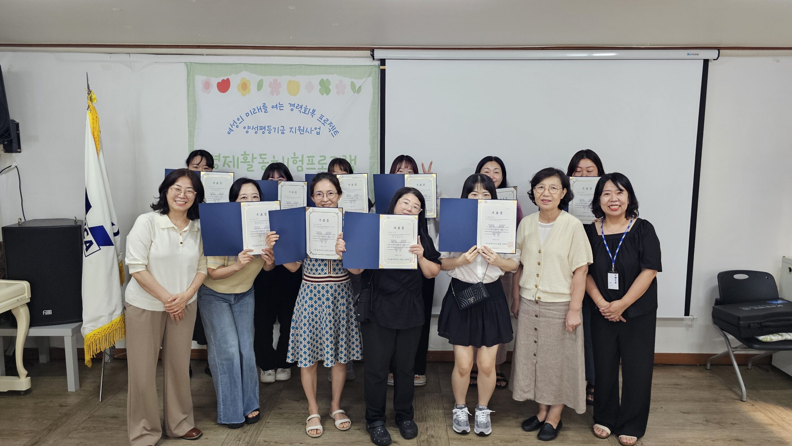 경력단절 여성의 사회참여 확대와 성평등 문화 확산을 위해 울산YWCA가 기획한 2025년 양성평등기금사업이 성황리에 마무리됐다. 지난 5월부터 시작된 본 사업은 펫푸드, 원예테라피, 바리스타 등 경제활동 체험프로그램을 통해 참여자들의 직무역량 습득은 물론 자아 성찰과 자신감 회복의 기회를 제공하였다. 7월에는 여성리더십 교육을 열어 소통 및 공감 역량을 강화하였고, 9월 4일(목)에는 양성평등주간을 맞아 시청 앞에서 ‘양성평등 임금의 날’을 개최해 시민들과 성별 임금 격차 문제를 공유하고 평등한 노동환경 조성을 촉구했다. 이어 9월 16일(화) 수료식을 통해 교육생들과 성과와 소감을 나누며 프로그램을 마무리했다.