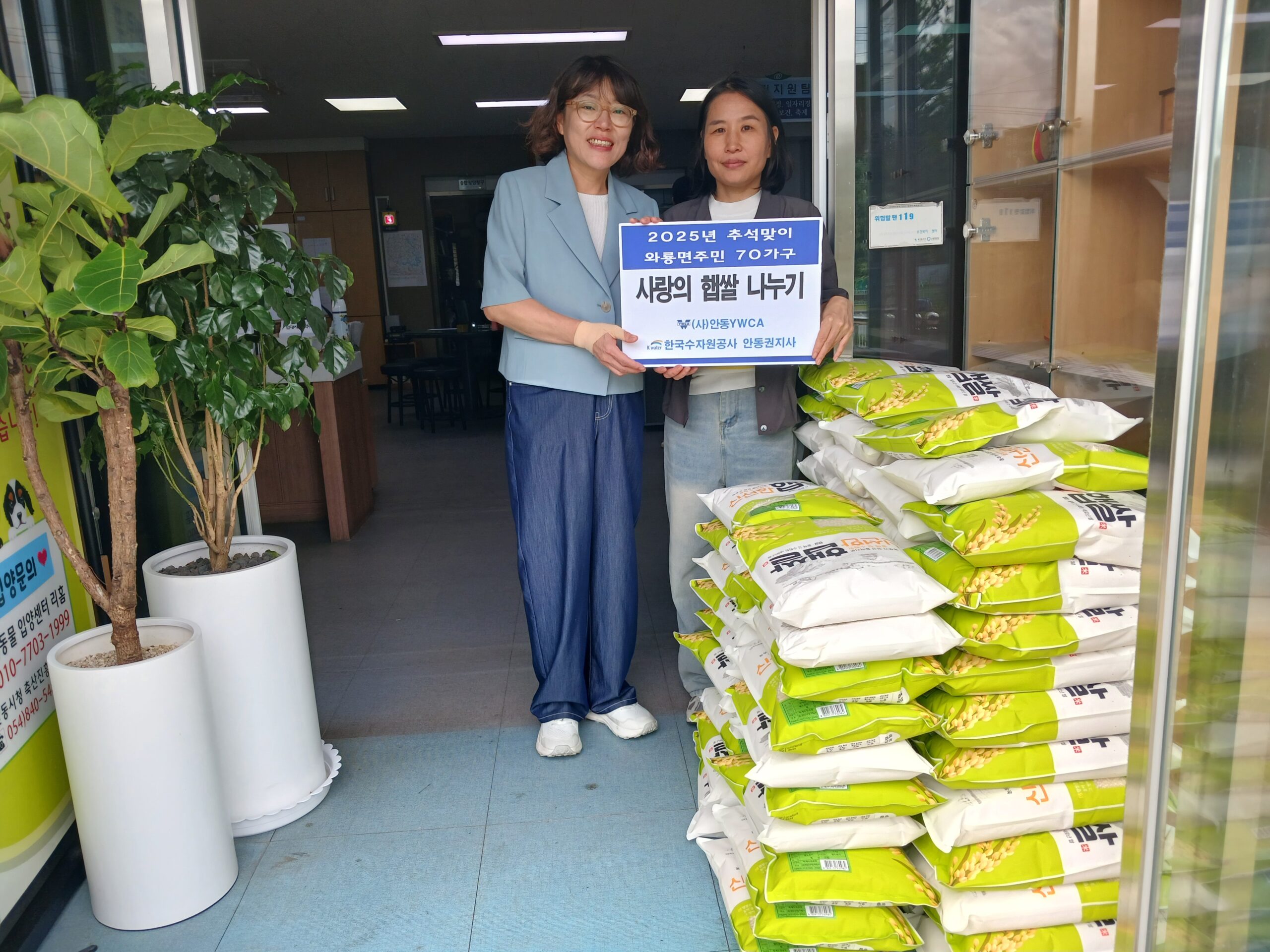 안동YWCA는 매년 한국수자원공사 안동권지사(안동권관리단)의 따뜻한 후원을 통해, 지역사회 내 취약계층을 위한 명절맞이 나눔 활동을 꾸준히 이어오고 있다. 그 일환으로, 올해도 추석을 앞두고 ‘사랑의 햅쌀 나누기’ 행사를 진행하여 어려운 이웃들에게 따뜻한 정을 전하는 뜻깊은 시간을 가졌다.