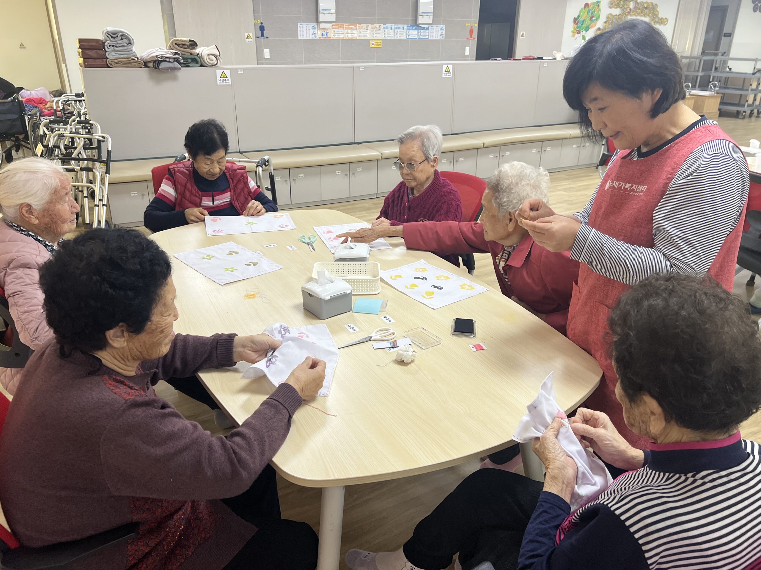 논산YWCA는 10월 23일(목) 오후 2시부터 4시까지 세도노인재가복지센터에서 ‘시니어와 함께하는 친환경 실천 프로그램’을 진행했다. 이날 선보인 ‘고래가 춤추는 바다’ 그림자 인형극은 고래가 어획용 그물에 걸려 꼬리를 잃고 가족과 떨어졌다가 다시 만나는 내용을 담은 이야기이다. 과거 어르신들이 지켜온 생활 속 절약과 환경 실천을 언급하며 현재의 환경 상황을 설명하고 격려의 말을 전했다. 이어 친환경 소재인 소창행주 꾸미기 활동이 진행돼 스탬프 찍기와 바느질 체험이 이루어졌다. 작은 바늘을 사용하는 데 어려움도 있었지만, 친환경에 의미를 함께 되새기는 시간이 되었다.