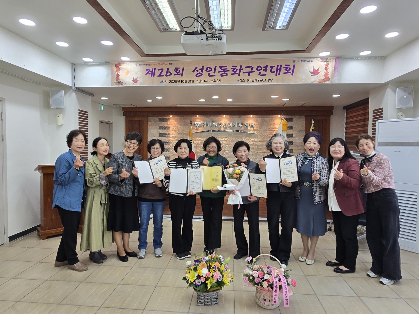 김해YWCA는 농촌활성화지원센터에서 주관하는 농촌어르신들을 위한 동화구연가양성사업에 참여하여 5분의 동화구연가를 양성하였다. 10월 15일(수)에 진례화전마을회관에서 열린 동화구연가양성사업 수료식에서는 김해YWCA 전문강사의 지도하에 성인동화구연대회에 나가 우수한 성적을 거둔 5분의 동화구연가가 수료했다.