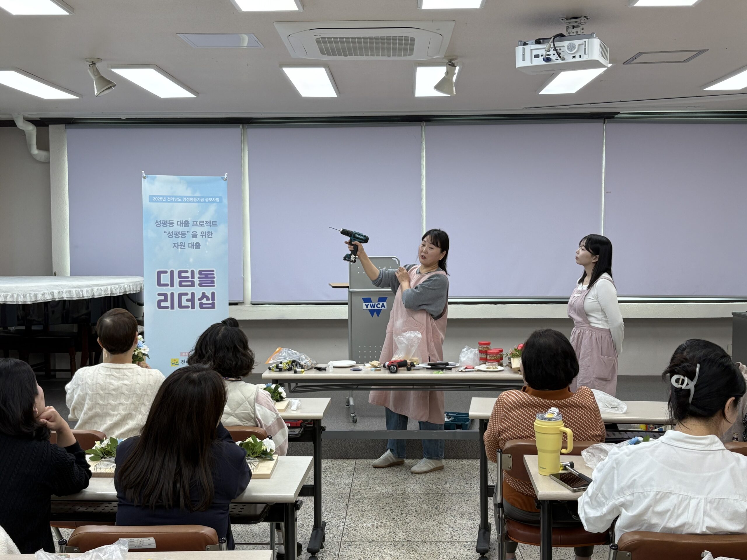 ‘유리창 천장이 28! 우리의 리더십’이라는 주제의 교육을 통해 성인지 감수성과 양성평등의 중요성을 배우고, 모두가 함께 성장하는 리더십의 방향을 모색했다. ‘드릴을 잡는 손에 성별은 없습니다.’라는 주제로 목공 체험을 실시하여, 목공은 남자의 일이라는 고정관념을 넘어 직접 만들고 배우는 즐거움을 느꼈다. 참가자들은 모두가 도전할 수 있는 세상과 성평등의 가치를 되새기는 뜻깊은 시간을 가졌다.