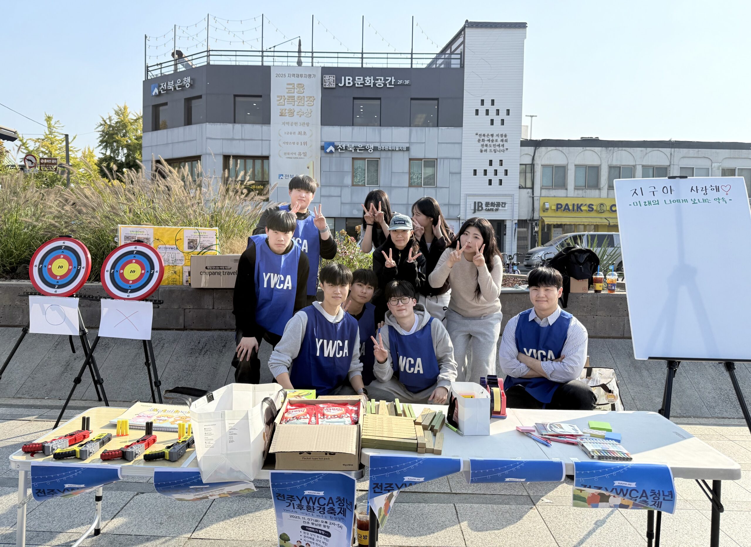 전주YWCA 대학청년Y 동아리는 11월 7일(금) 전주 풍남문광장 일대에서 ‘기후환경 축제’를 개최했다. 이번 행사는 YWCA의 가치와 활동을 시민들에게 알리고, 청년들의 사회적 참여를 확대하며 환경 보호 실천을 독려하기 위해 마련되었다.